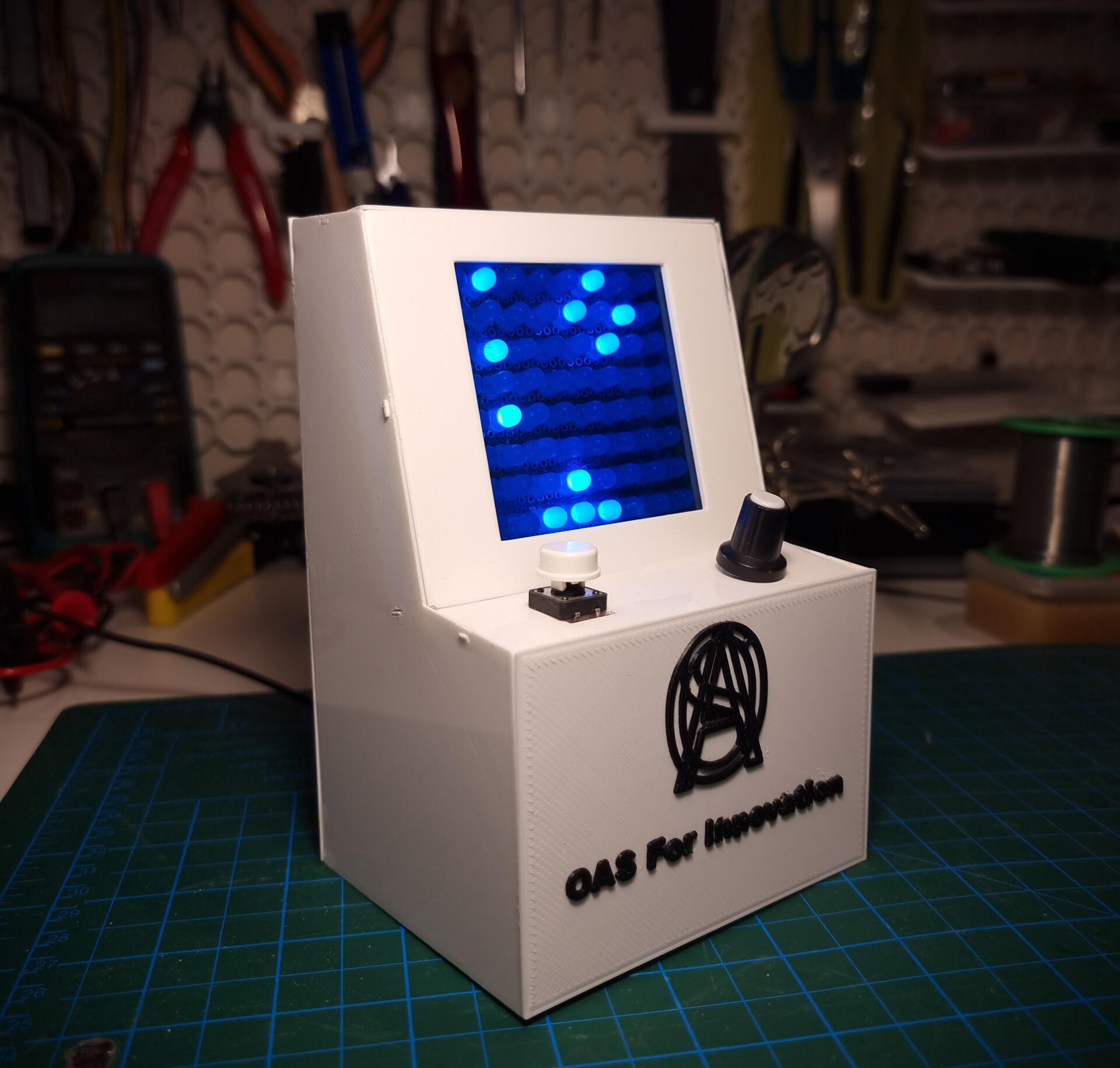 The first version of the Mini Arcade Console, developed as the foundation of OAS For Innovation.Built entirely from scratch, the system integrated custom hardware, embedded control, and a fully 3D-printed enclosure. The display was physically constructed pixel by pixel using a 64-LED matrix, engineered and wired manually to create a functional visual interface.A hands-on hardware project that marked the beginning of transforming ideas into real, working systems.